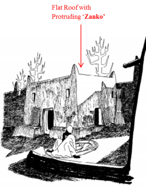 The effects of climate are addressed in Hausa buildings. Northern Nigeria, where the Hausa people can be found, falls within the Sahel savannah. This area is characterized by hot dry climatic conditions with extremes of temperature between day and night. Traditional Hausa houses are built to accommodate these climatic conditions. Openings are small and few in number so as to keep out dust and as much as the sun’s heat and glare as possible. The walls are made of adobe mud which is a good thermal regulator, helping to regulate extremes of temperature between day and night thus keeping interiors cool during the hot daytime and warm during the cold nights. Flat mud roofs are employed on the rectilinear walls. They act as good thermal insulators and are ideal in an area which is prone to fire outbreak due to dry weather conditions. The flat roofs are also suited to the limited amount of rainfall experienced within the year (Figure 5).