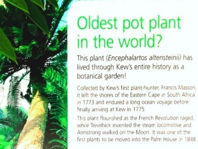 Figure 2. The oldest potted plant in the world is in the “living laboratory” of the Royal Botanical Gardens in Surrey (Kew Website)