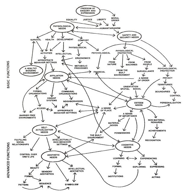 The below graphic (Figure 3) created by Jon Lang expresses the way that functions of the built environment tries to answer human needs.