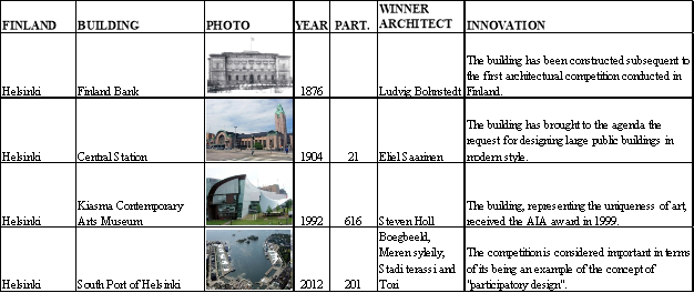 There are also laws in France and Spain to build all public buildings by virtue of design competitions. The giant projects obtained by national and international competitions in France draws attention of both French and the world people. Competition rules were set in 1872 in England through the Royal Institute of British Architects (RIBA). The Finnish Architects Union (SAFA), founded in Finland in 1919, created the "Board of Competitions" in 1947 (URL 4). The mentioned board is obliged to submit the most accurate information to the competitors and write the specifications. In Finland, the buildings obtained through competitions held by the state as well as private firms, are among the important world examples. It can be seen that the rules to be applied in design competitions were set by the regulations in the 19th century in European and Nordic countries as well as in America. The projects selected and applied by virtue of the competition projects have created a database reflecting the architectural and urbanism approach of that period they have been made in (idea archive) and have played a significant role in the development of those country's architecture and urbanism.