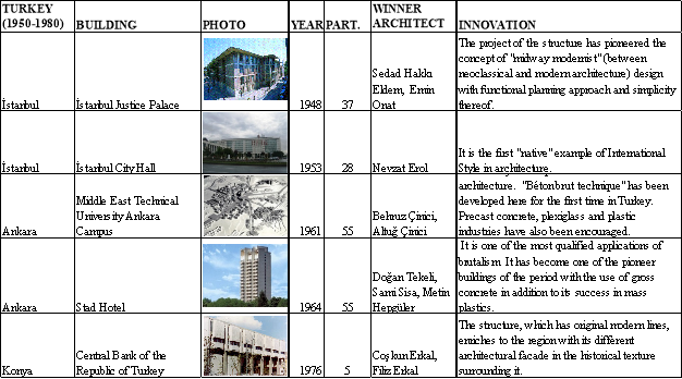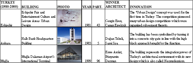 Design competitions, results of which are anticipated with anxiety, are conducted in numerous countries with an eye to select the best in their disciplines. Both national and international competitions have a significant potential in terms of providing knowledge and accumulation to contemporary architecture history. It is stated by the studies conducted on design competitions that while competitions contribute to the architectural environment of the country where they are held, they also provide opportunity for monitoring the architecture and accordingly changing discourse of the environment. Sure enough, considering the remarkable buildings of the second half of the 20th century, the project competitions and the competition colloquiums as regards the cited buildings are observed to have significant influences on architectural and urban environment in terms of theoretical discussions and innovations.